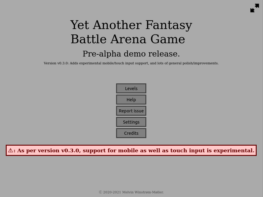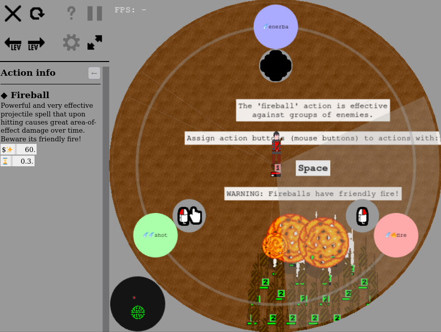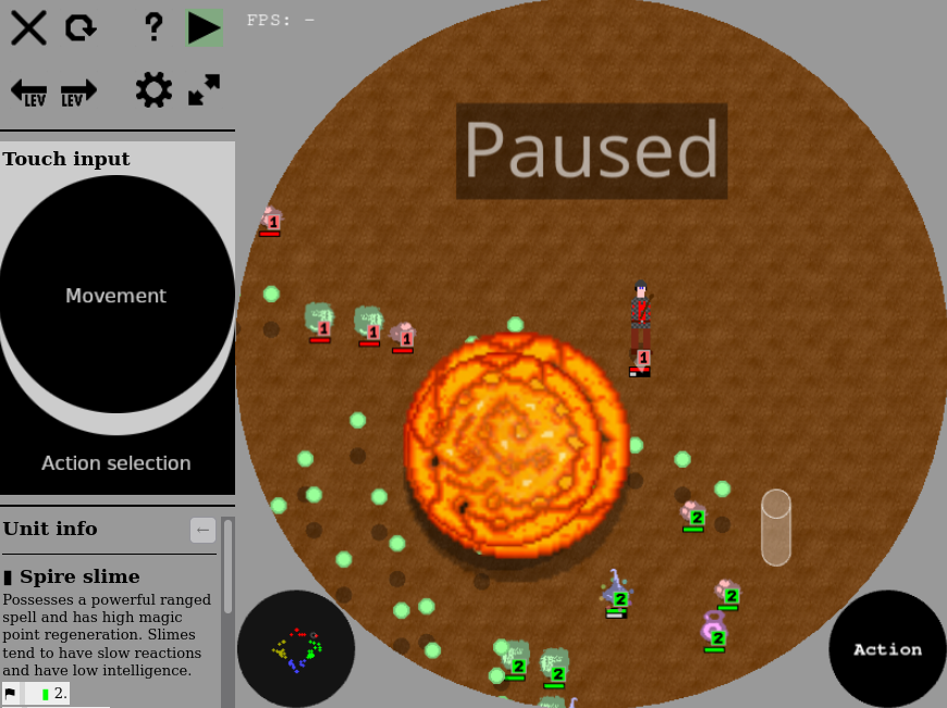 Description: A challenging fantasy-themed top-down action game with tactics and more than 2 teams. While this is still a pre-alpha demo release, with v. 0.3.4, the game is maturing more and more, and there are no known bugs on supported browsers. The game is not officially supported on mobile browsers in general, but might work for specific mobile browsers - enabling touch input in the settings is recommended if you want to give it a try.